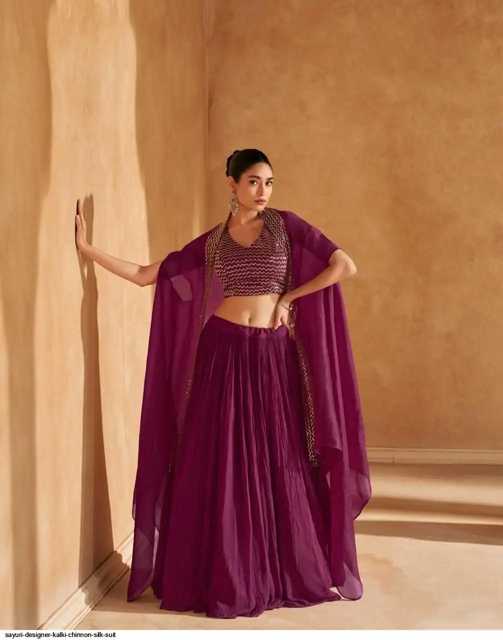 PREMIUM REAL CHINON SILK ( PURE HANDWORK ORGANZA SILK JACKET WITH HANDWORK SILK BLOUSE AND CHINON SILK LHENGHS WITH CANCAN )