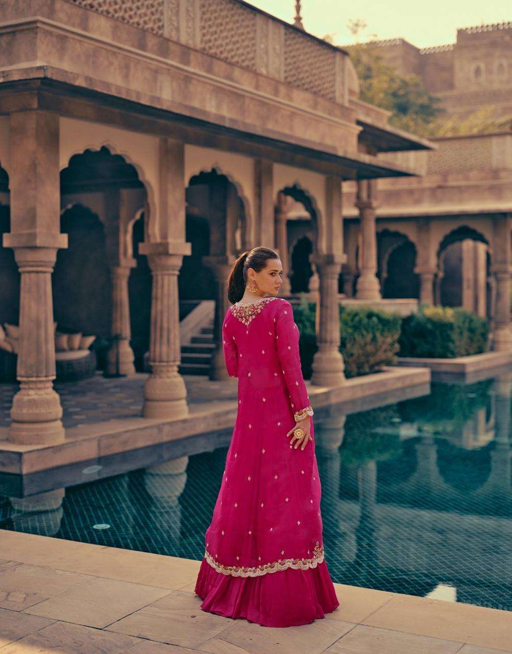 HEAVY ELEGANT DESIGNER PARTY WEAR DRESS. Hand work & Embroidery on jacket and blouse, Cancan included