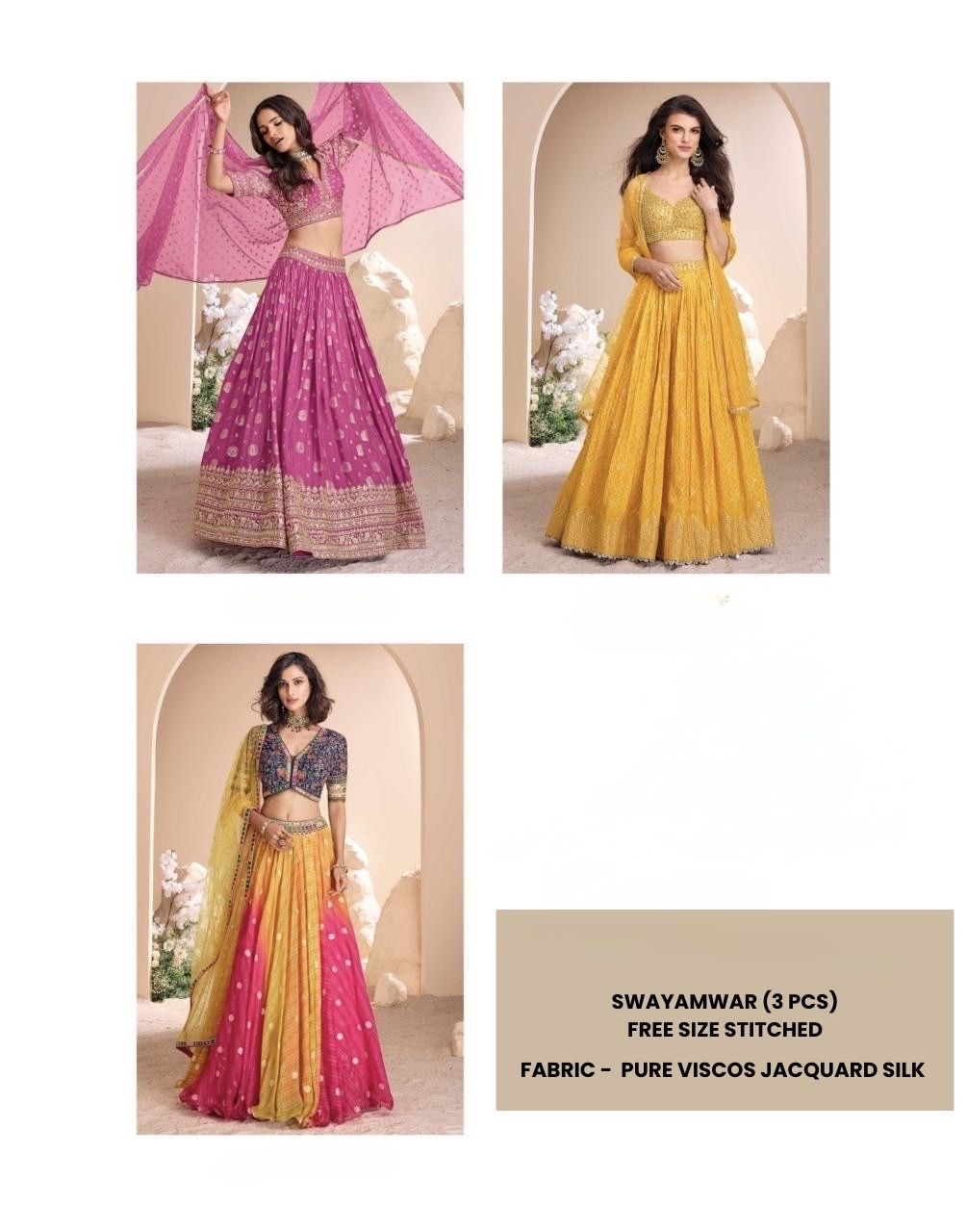 | Fabric Type | Pure VISCOS JACQUARD Silk with Bandhani design on skirt with hand woven work on blouse and premium cotton lining |