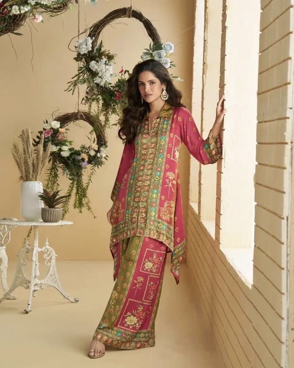 Digital Crepe Silk Dissembled Mirror Work Cord Sets