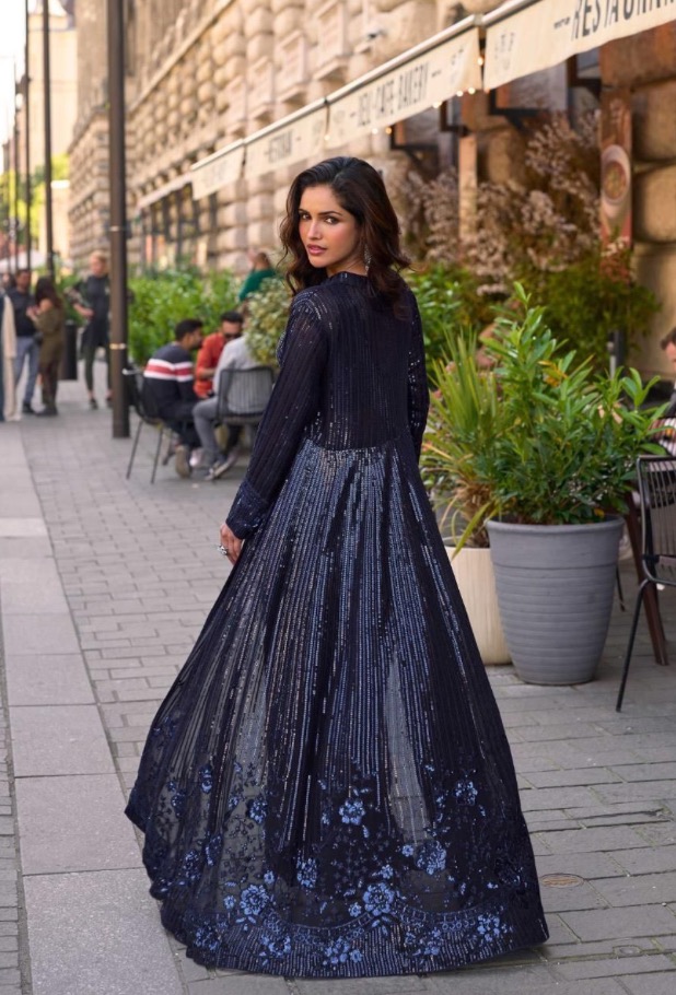 FULL HEAVY LOOK FRONT AND BACK EMBROIDERED FLOOR LENGHT JACKET WITH EMBROIDERED BLOUSE AND PLAZZO
